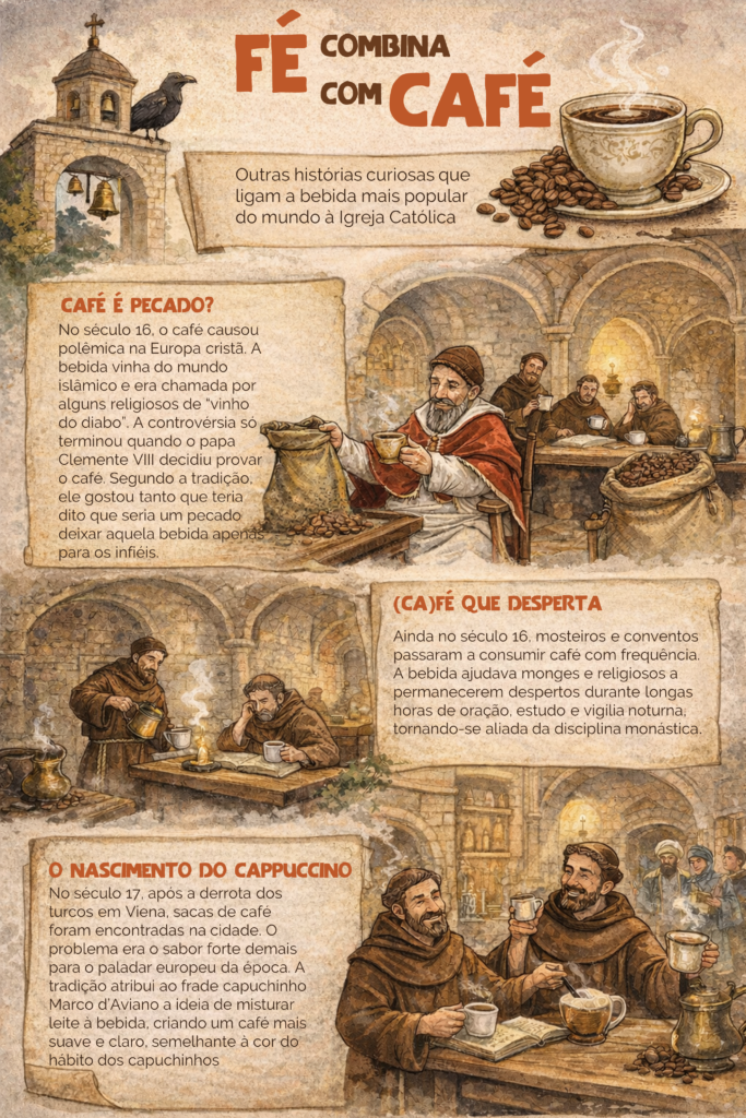 FONTES: Lucca Giovanni Alegro, responsável pela marca Latitude 13 e mestre em Comércio Exterior; livros Guia de Curiosidades Católicas, de Evaristo Eduardo de Miranda; Dicionário Gastronômico Café com suas Receitas, de Giuliana Bastos; site capuchinhos.org.